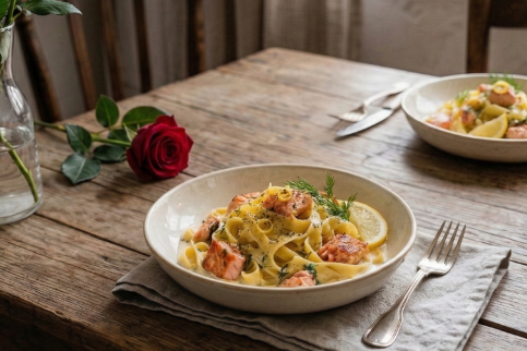 Makaron z łososiem w kremowym sosie cytrynowym – romantyczna klasyka