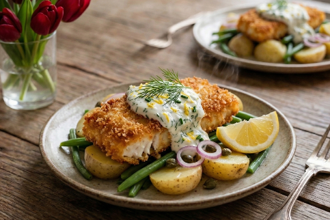 👉 Chrupiąca ryba i lekki sos tworzą idealne połączenie 💛